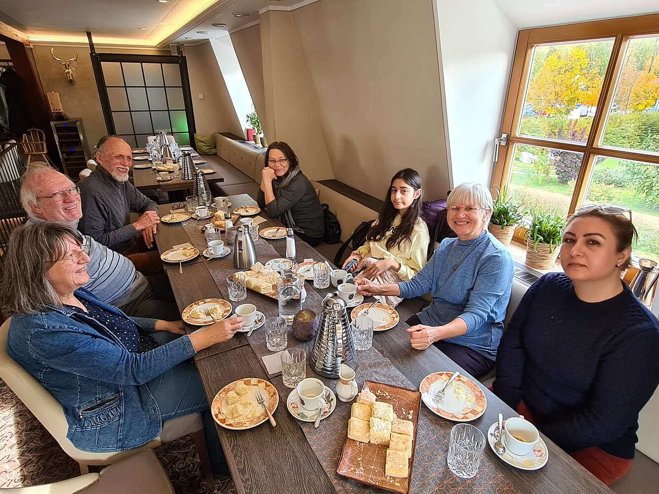 Anschließend waren noch einige Anwesende zusammen bei Kaffee und Kuchen und konnten ihre Erinnerungen an die Verstorbene austauschen und sich in freundlicher Atmosphäre näher kennenlernen.